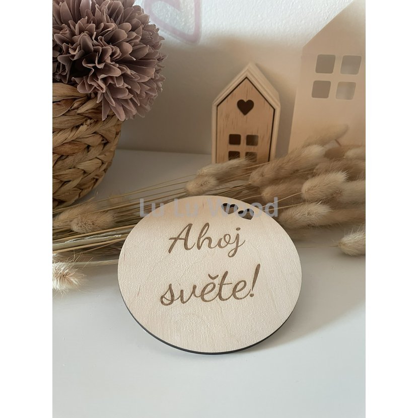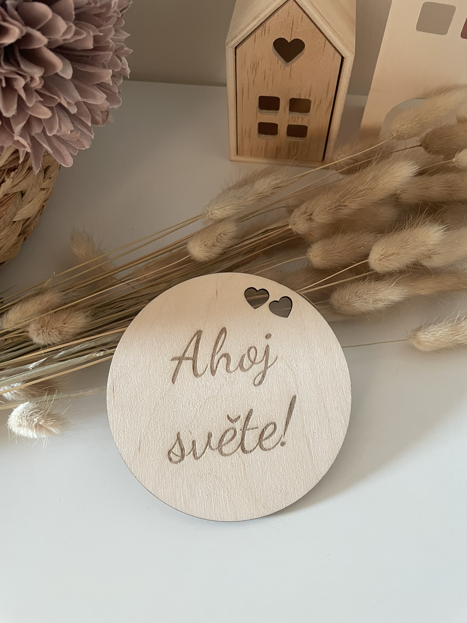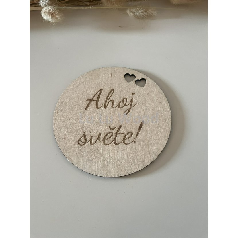 Dřevěný milník - Ahoj světe! Je krásný milník pro uvítání a představení tak krásného okamžiku jako je narození miminka. Tato dekorace je vhodná k focení 1. okamžiků Vašeho zázraku.
